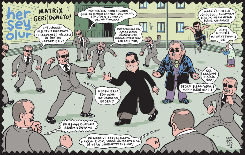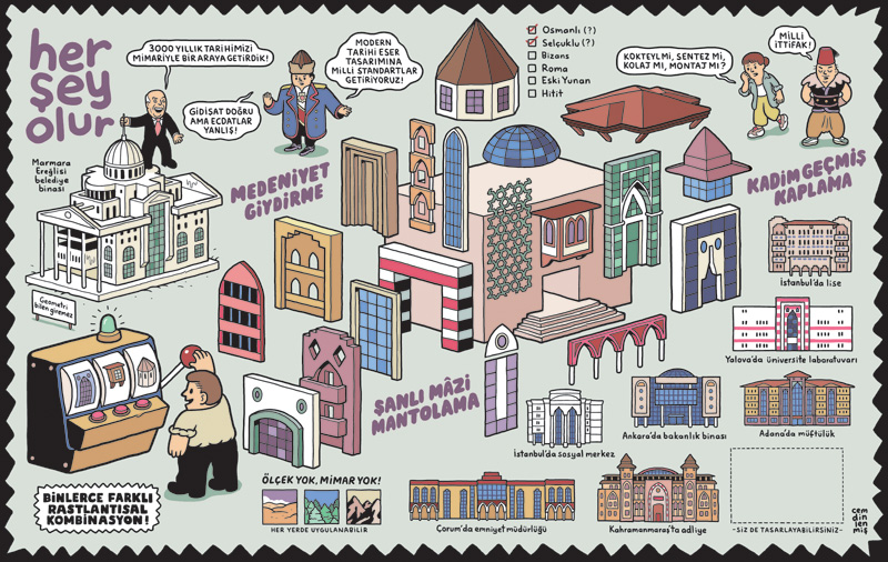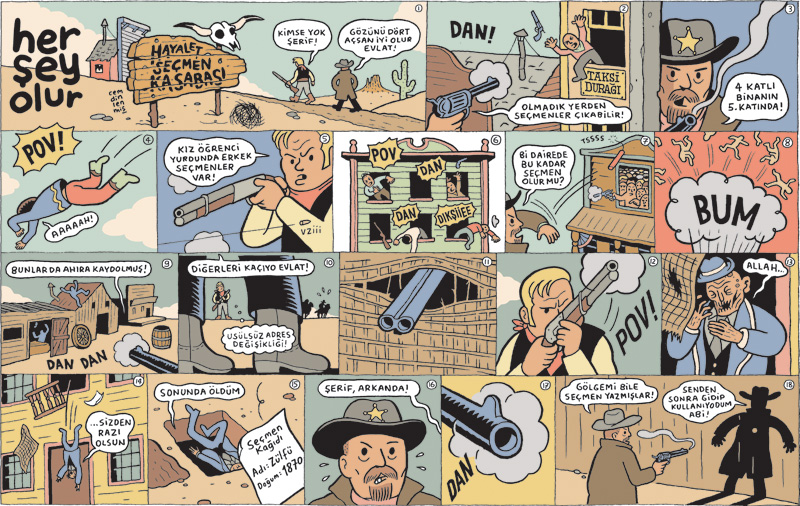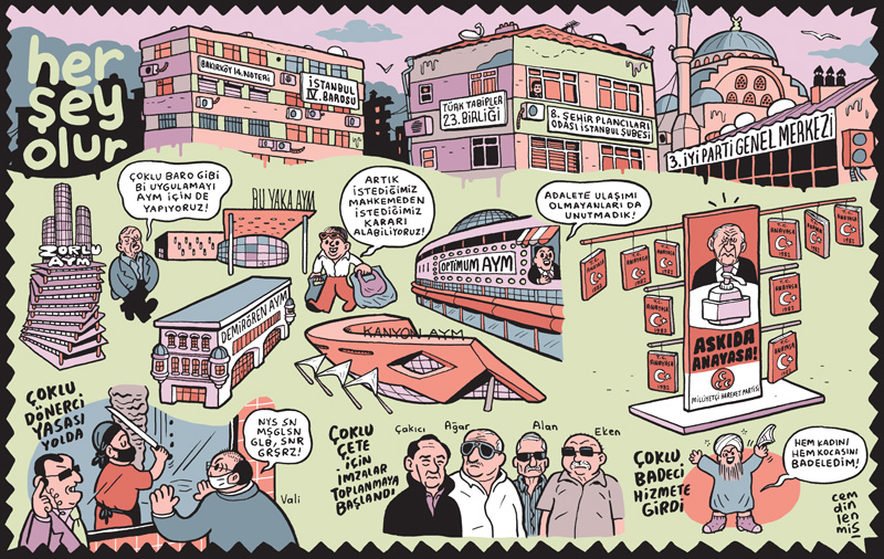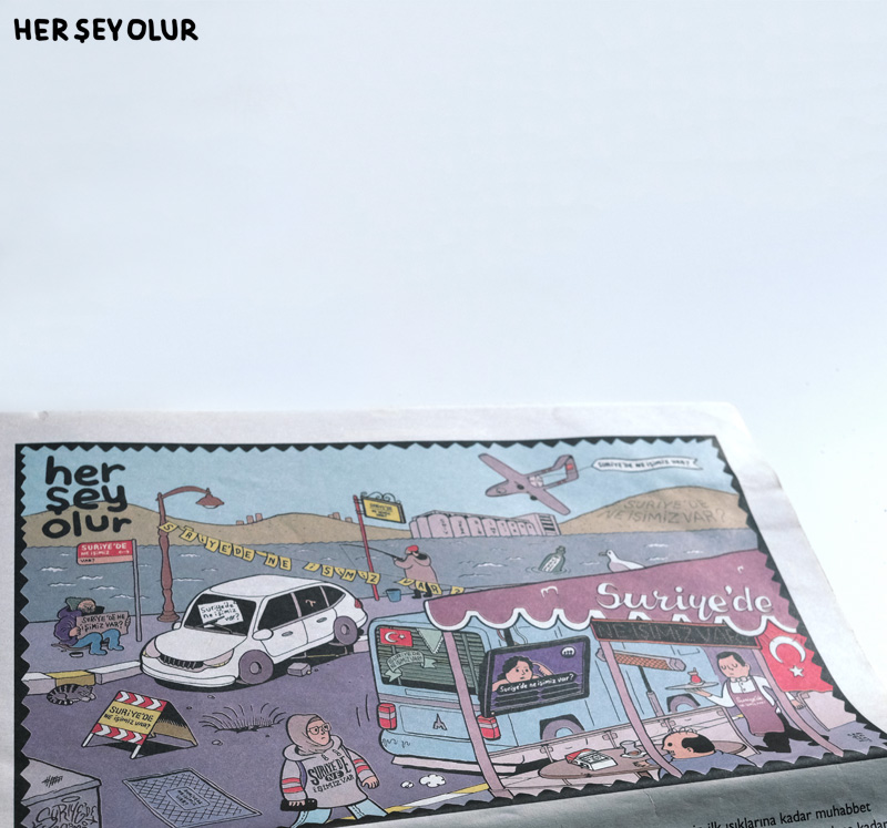 I’m an artist based in İstanbul. I studied graphic design in Marmara University, Faculty of Fine Arts. I began drawing my political comic series Her Şey Olur for Penguen Magazine in 2006. My latest book as a selected collection of the series has been published by İletişim Yayınları in 2018.